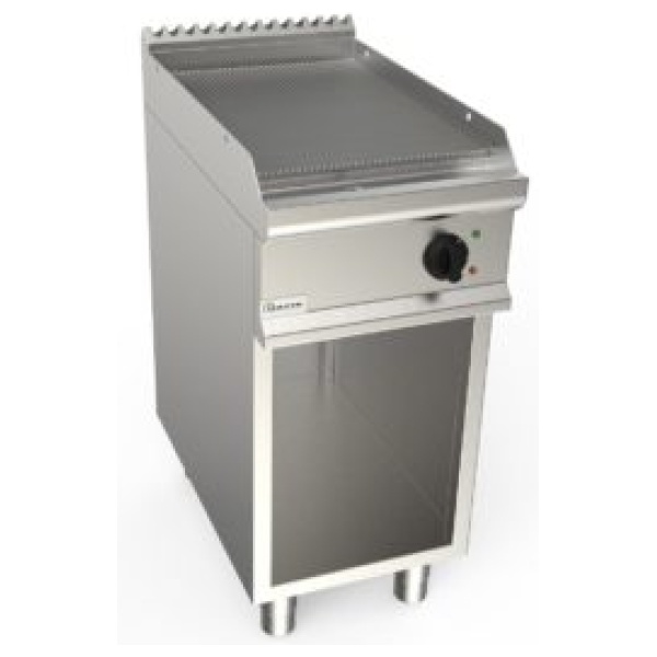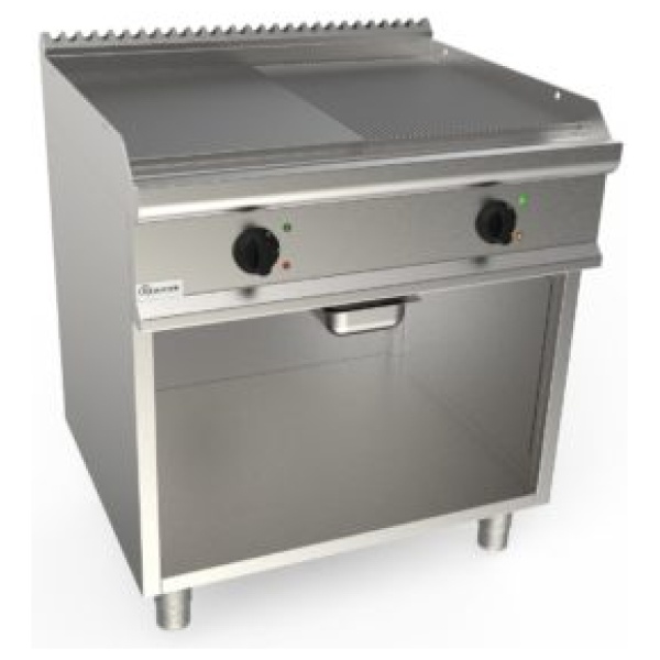 Grilovací deska elektrická, 10,8kW 400V, kombinovaná pracovní plocha – ocelová, šířka 700mm, skříňový modul otevřený