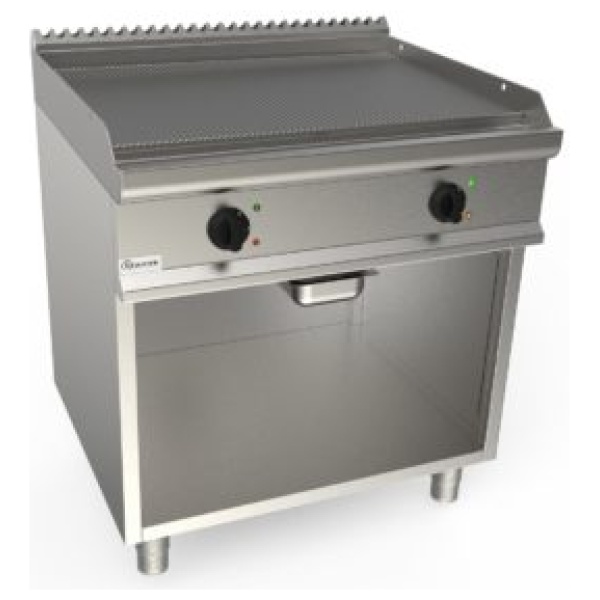 Grilovací deska elektrická, 10,8kW 400V, rýhovaná pracovní plocha – ocelová, šířka 800mm, skříňový modul otevřený