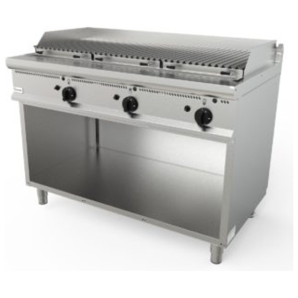 Plynový lávový gril značky CASTA z řady LADY 700 z odolné nerezové oceli AISI 304. Zaoblený horní povrch z nerezové oceli AISI 304, tloušťka 2,0 mm, se zadním komínem. Mřížka z nerezové oceli ve tvaru písmene „V“ k odvádění tuku. Ocelová tyčová mřížka na vaření ryb (na vyžádání). Přední tukový tah s odtokovým otvorem a vyjímatelnou zásuvkou na sběr tuku. Vysoce účinný plynový hořák se třemi plamenovými trubicemi, bezpečnostním plynovým kohoutem, termočlánkem, piezoelektrickým zapalováním a nastavením teploty min./max. Rukojeti a knoflíky Cool-grip ze žáruvzdorného materiálu. Nohy pro stolní model.