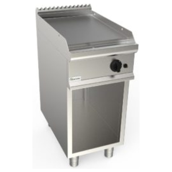 Grilovací deska plynová, 6,0kW, hladká pracovní plocha – ocelová, šířka 400mm, skříňový modul otevřený