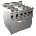 Sporák elektrický, 4 plotýnky – 4×2,6kW 800V, šířka 800mm, modul s elektrickou troubou 7,9 kW pro GN 2/1