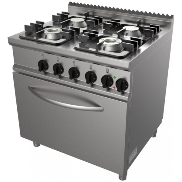 Sporák plynový, 4 hořáky – 4×4,5kW, šířka 800mm, modul s plynovou troubou 7,9 kW