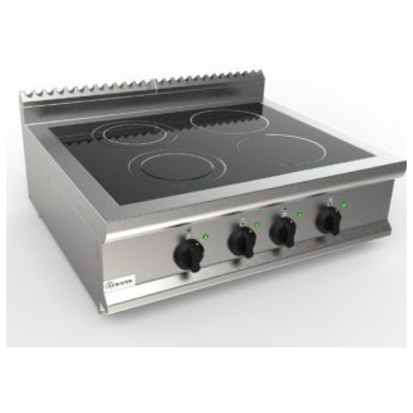 Sporák sklokeramický, 4 plotýnky – 4×2,5kW, šířka 800mm, horní modul